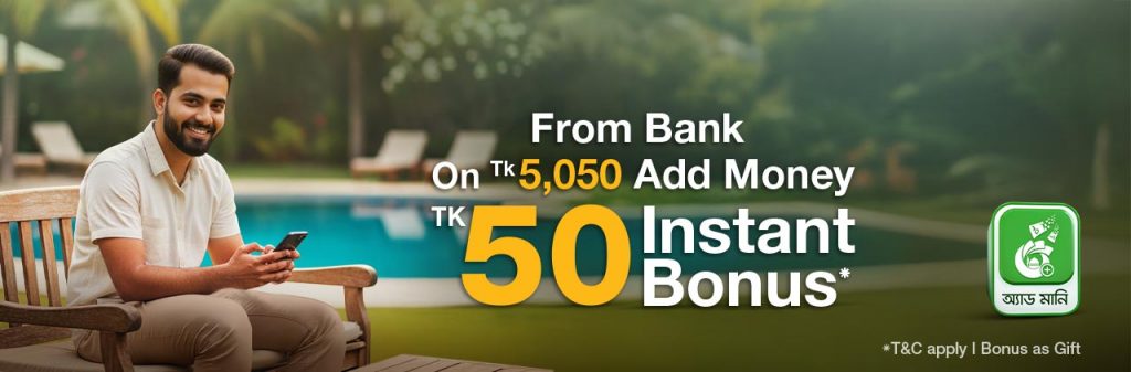 Get Instant BDT 50 Bonus as Gift on BDT 5,050 Add Money from Bank